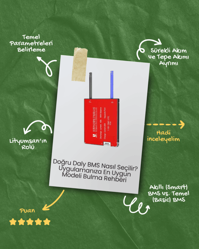 Siz de yatırımınızı korumak ve bataryalarınızdan maksimum verim almak için en uygun Daly BMS modelini arıyorsanız, Lityumsan.com olarak uzman ekibimizle size destek olmaya hazırız. İhtiyaçlarınıza en uygun Daly BMS satışları ve teknik detaylar için hemen ürün kataloğumuzu inceleyin!